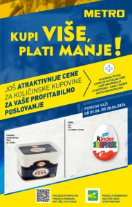 POGLEDAJTE KOMPLETNU PONUDU IZ PROGRAMA KUPI VIŠE, PLATI MANJE MOGUĆE JE KOMBINOVATI RAZLIČITE VRSTE ISTOG PROIZVODA JOŠ ATRAKTIVNIJE CENE ZA KOLIČINSKE KUPOVINE ZA VAŠE PROFITABILNO POSLOVANJE PONUDA VAŽI OD 01.04. DO 30.04.2026. President Somborska feta 500 g art. 247603 Kinder Jaje 20 g art. 356804 / 341395 KLIKOM NA PLUSIĆ OTKRIJTE AKTUELNE CENE I VIŠE INFORMACIJA O PROIZVODU – SADA U NAŠEM DIGITALNOM KATALOGU.