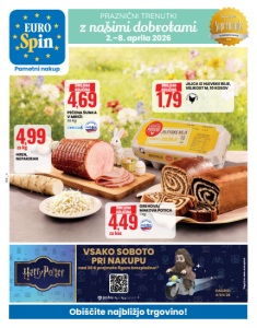 Pametni nakup 2.–8. aprila 2026 2.–8. aprila 2026 Sveže meso www.eurospin.si Cene veljajo samo za mesnice 4,29 za kg 5,99/ SVINJSKI VRAT S KOSTJO 4,39 za kg 6,99/ popust pri blagajni -37% SVINJSKO STEGNO V KOSU VP 5,69 za kg 6,79/ ČEVAPČIČI 4,29 za kos 5,49/ GURMANSKA PEČENKA S ŠPINAČO IN PARMEZANOM 650 g za kg 6,60 € 2,99 za kg 3,99/ popust pri blagajni PIŠČANEC NA PLADNJU BREZ DROBOVINE 5,39 za kg 7,59/ PIŠČANČJA BEDRA BREZ KOSTI IN KOŽE 1,99 za kos 2,79/ -28% VELIKONOČNI SLADKI KRUH - PINCA 500 g za kg 3,98 € 1 ,19 za kos 1,59/ -25% POLBELI HLEBEC, POLOVICA, REZAN 500 g za kg 2,38 € 2,69 za kos 3,49/ -22% OREHOVA/ MAKOVA POTICA 500 g za kg 5,38 €